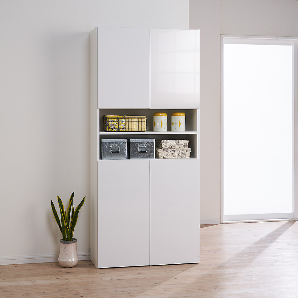 光沢感が美しい収納庫。多彩な収納力で様々なものがスッキリ入ります。