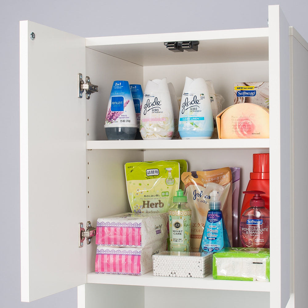 ●前面は水に強い素材なので洗濯機・脱衣所周りでもリネン庫として安心して使えます。●扉はワンタッチで開け閉めができるプッシュ式です。