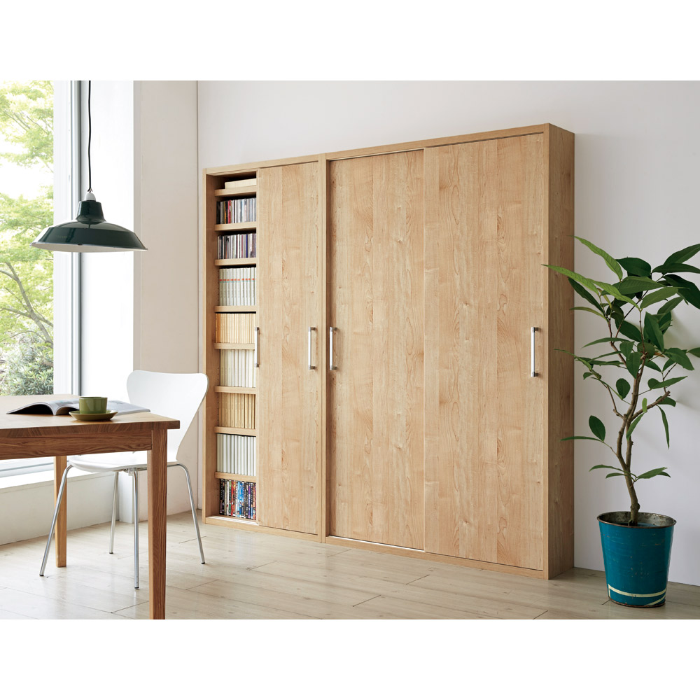 開閉に場所をとらない引き戸式の本棚です。頑丈棚板で、省スペースで大量収納できる木目調本棚がリビングや書斎、オフィスを彩ります。