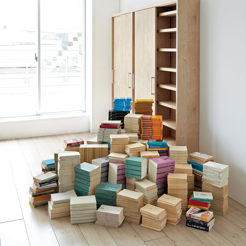 大量の本をすべてを隠して、すっきりとした空間に。 ※写真は幅115奥行40cmタイプです。