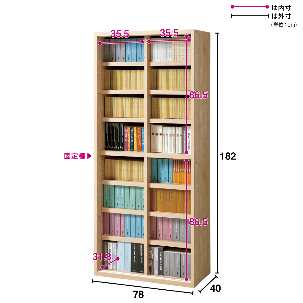 天然木調引き戸本棚 ハイタイプ 幅78cm奥行40cm CD DVDラック 本棚 ラック シェルフ 628019