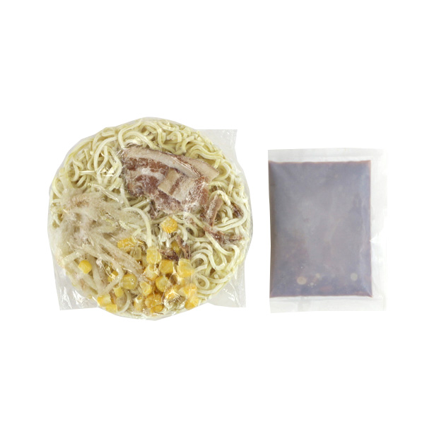 1.鍋に水約300ccと添付のスープを入れ、沸騰したら冷凍麺を具材を上にして入れてください。