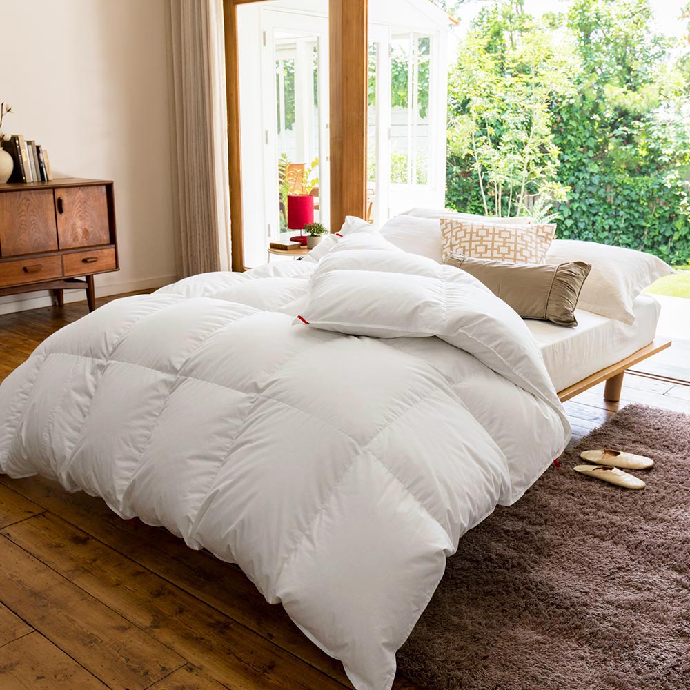希少な5つ星ラベルのスペイン産「成熟羽毛」羽毛はダウンパワーの数値が大きいほどより多くの空気を含み、保温性も高くなります。本品に使われているスペイン産成熟羽毛は、丈夫でダウンボールが大きく、暖気をたっぷり含むから本当に軽く暖かいのです。トレーサビリティシステムにより羽毛の飼育環境を特定できるのも安心です。