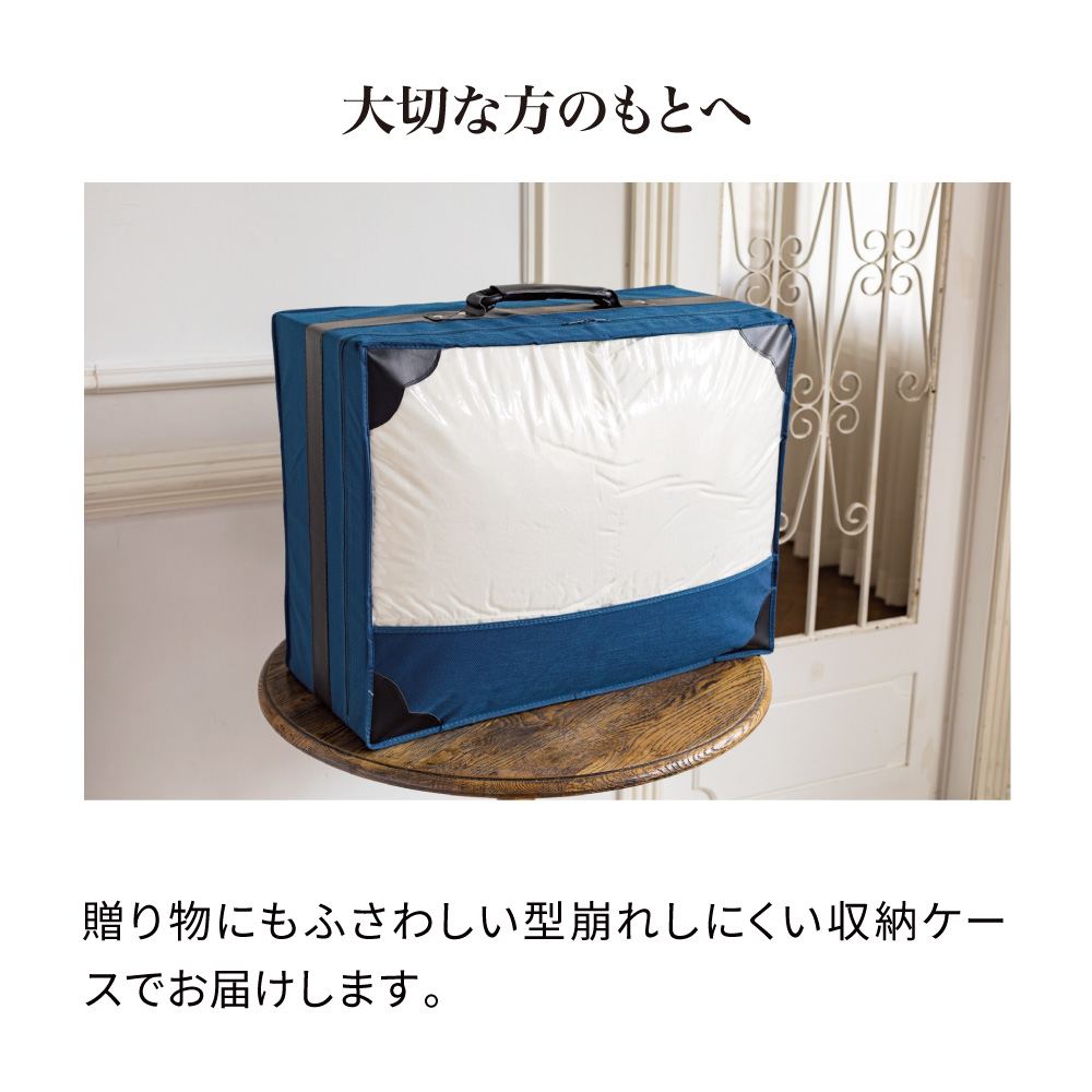 上質な綿サテン生地で、 日本の職人が仕上げていますふわふわに精錬された羽毛のふくらみを最大限に引き立てるため、細番手のスーピマコットンのサテン生地を採用。羽毛のふくらみを損なわずふんわりと包み込み、なめらかな肌ざわりと優れた耐久性を実現しました。