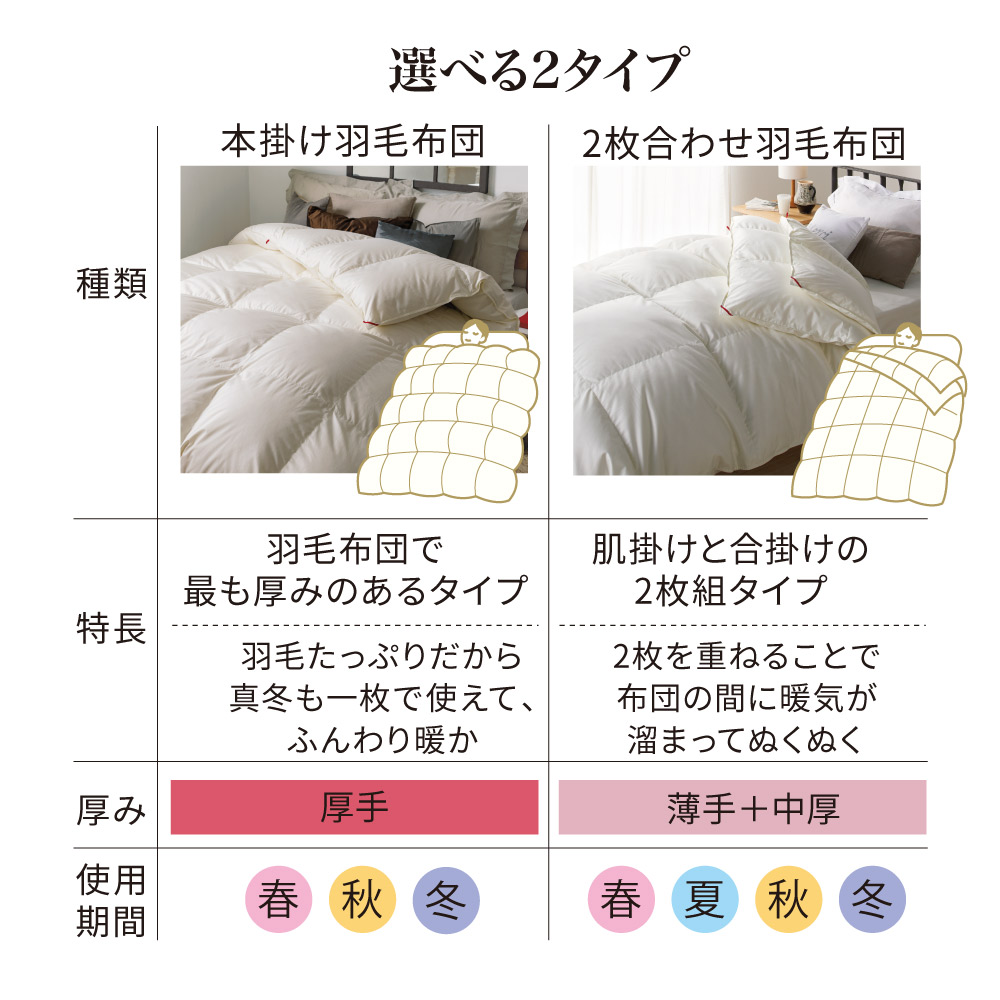 2枚合わせ羽毛掛け布団 シングルロングはこちらをご確認ください。