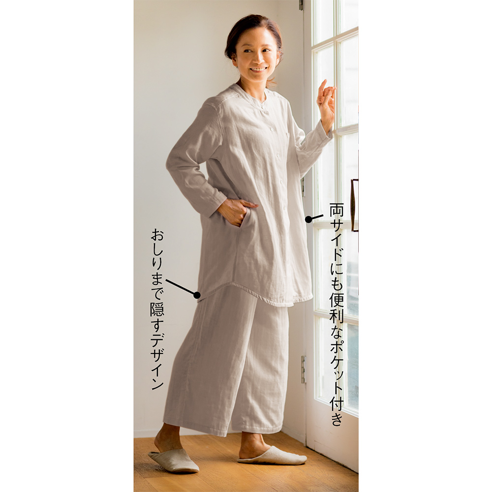 手放せないリラックス感 綿100%和ざらし二重ガーゼパジャマ レディース 春・秋用 546459