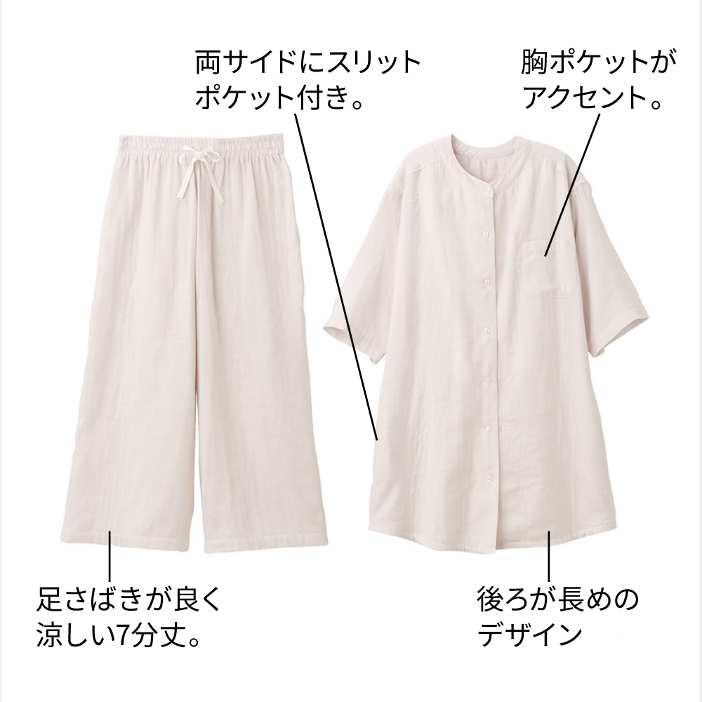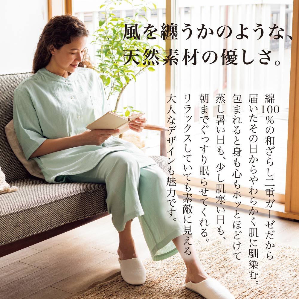 手放せないリラックス感 綿100%和ざらし二重ガーゼパジャマ(7分丈) レディース 夏用 561053