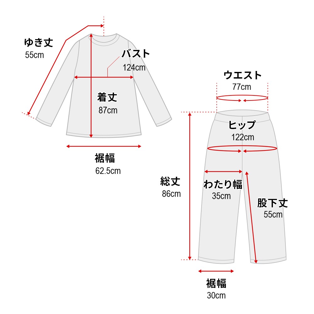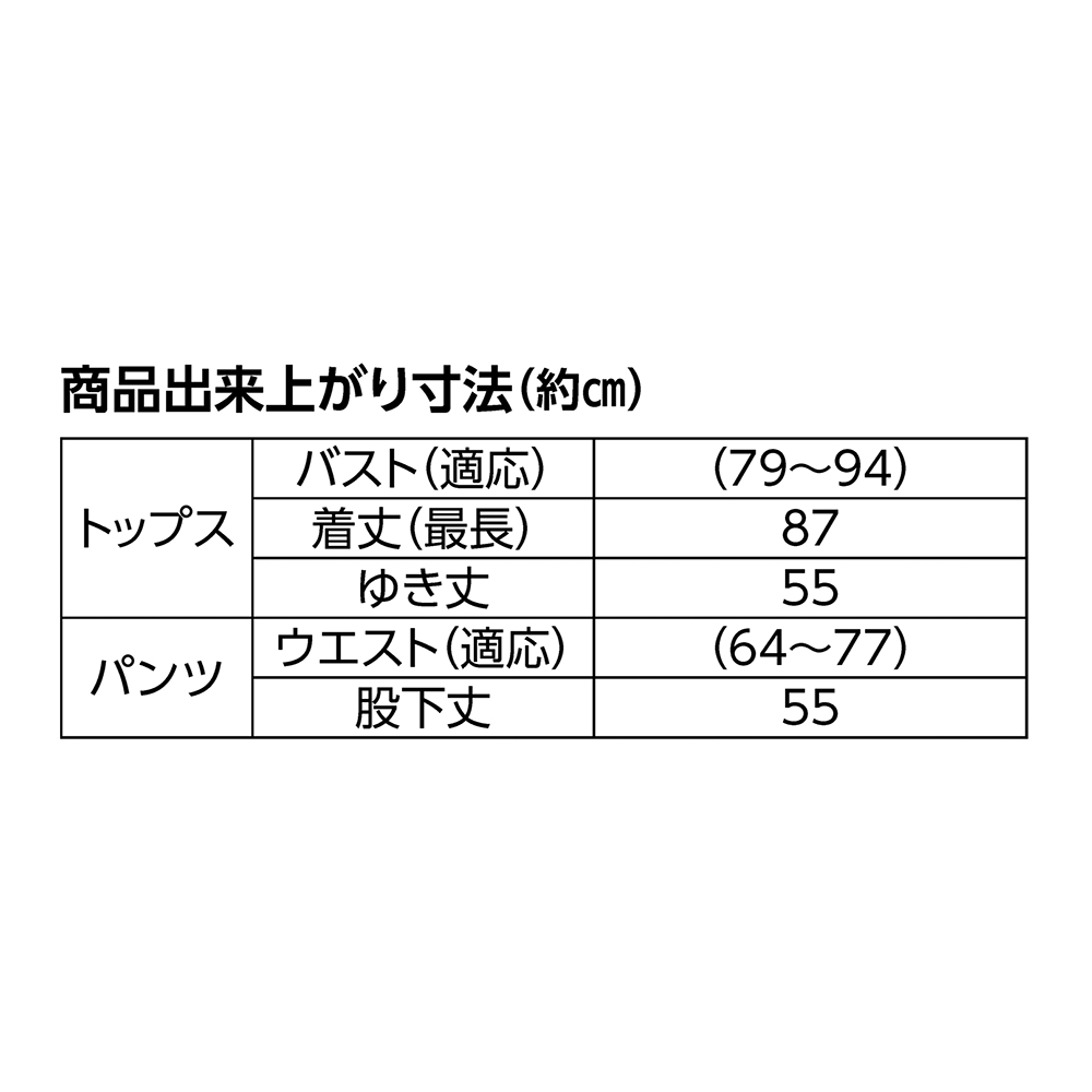 【パンツ】ウエスト(適応)…(64~77)cm・股下丈…55cm