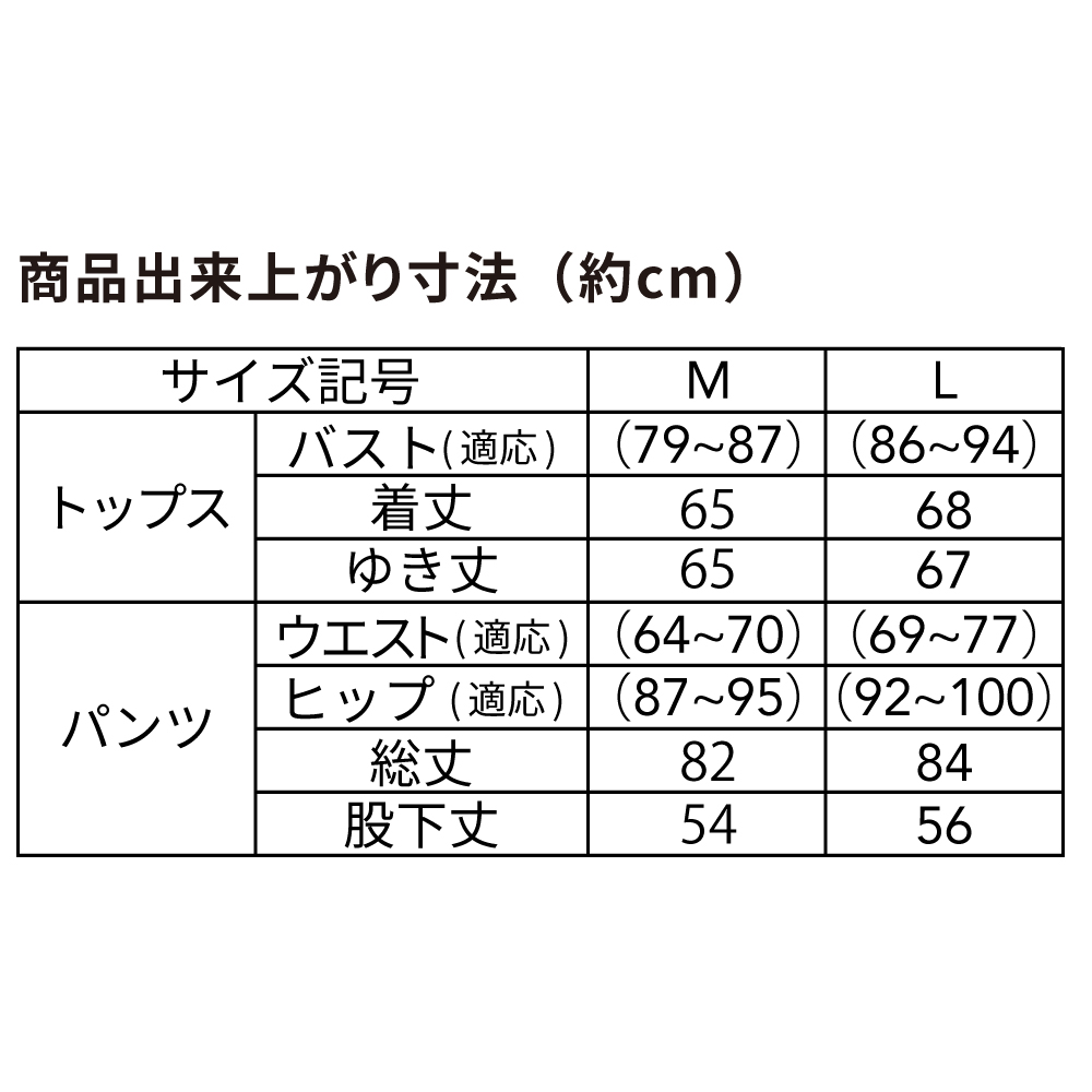 【パンツ】ウエスト(適応)…(64~70cm)・ヒップ(適応)…(87~95cm)・総丈…82cm・股丈…54cm