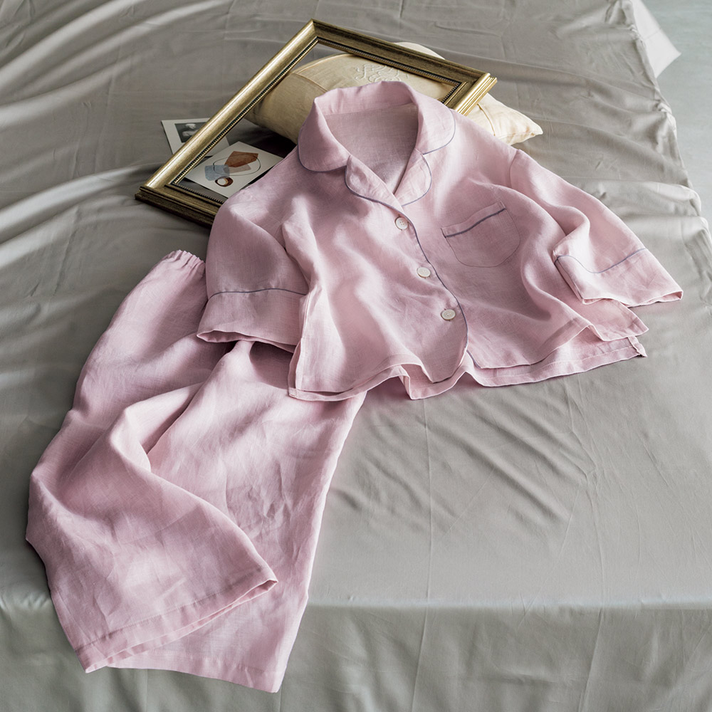 フレンチリネンの風合いを和ざらしで引き立てた、美しいパジャマ。