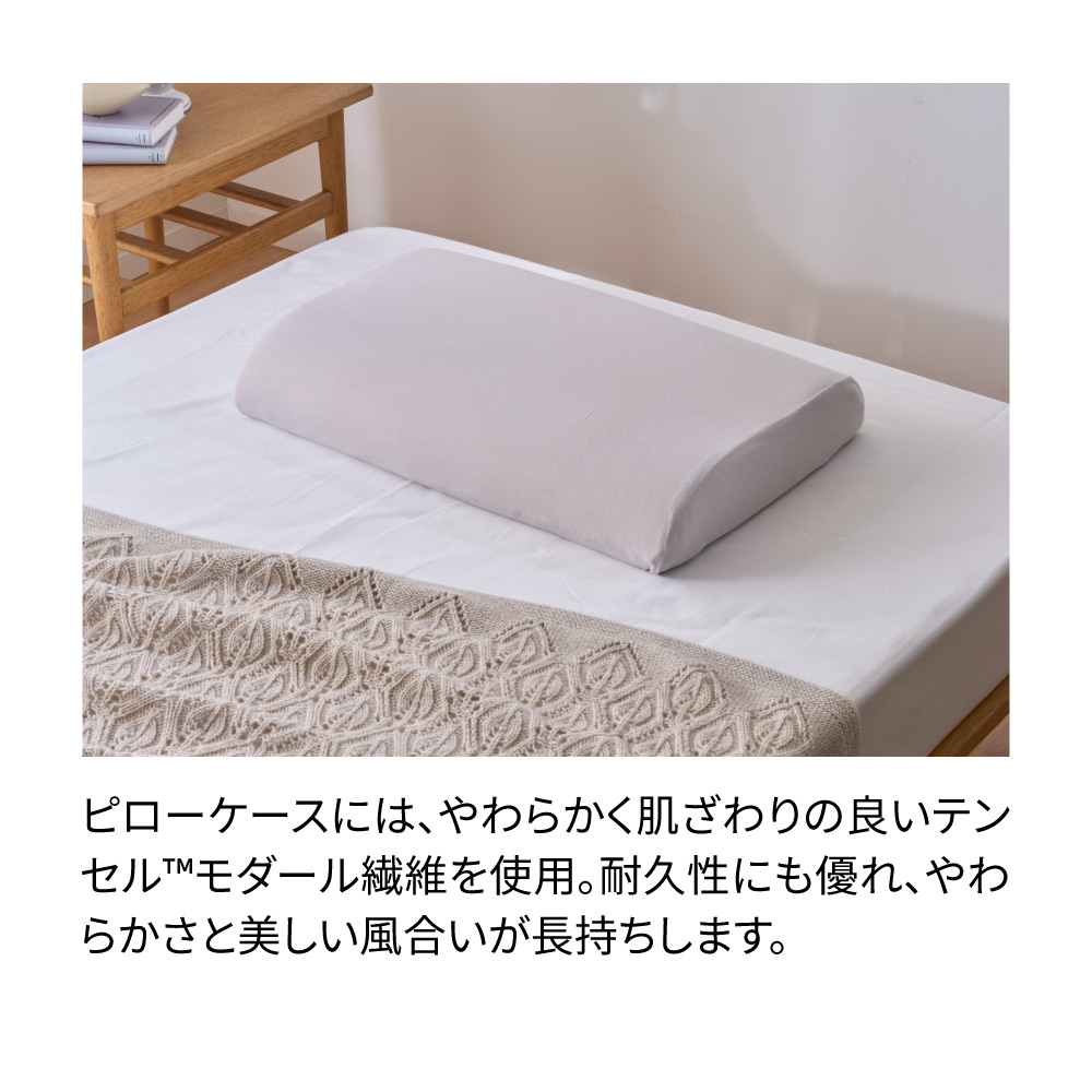 とろけるテンセルTMモダール生地が、肌に吸い付くようになめらか。優れた吸放湿性で、一晩中ムレにくい。枕の魅力を最大限に引き出し、ワンランク上のごきげんな眠りへ誘います。