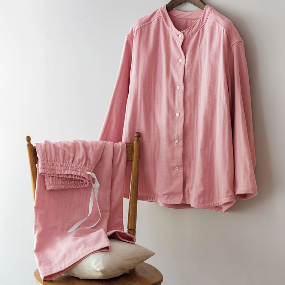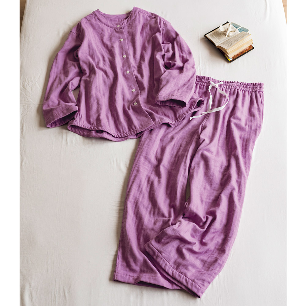 軽い生地とゆったりした着心地で動きやすいのに、おしゃれ感もあるデザイン。やわらかく肌触りが気持ちのいいガーゼ生地なので、冬に気になる汗やムレを吸い取り、ふんわりさらりと快適に眠れます。国産で安心の品質もポイント。