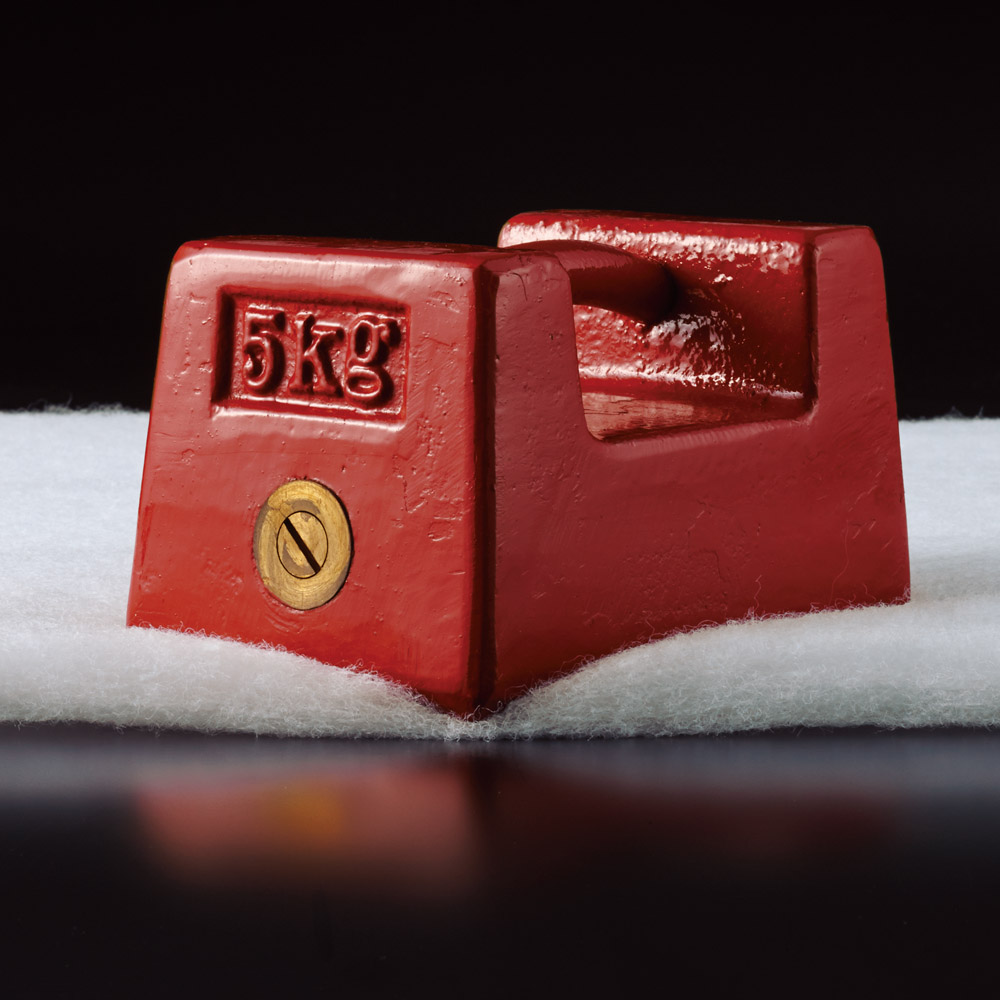 各素材の上にウエイトを置いて比較。ポリエステルわたが沈み込むのに対し、V-Lapは優れた反発力で沈み込みにくく、しっかりと押し上げているのが分かります。