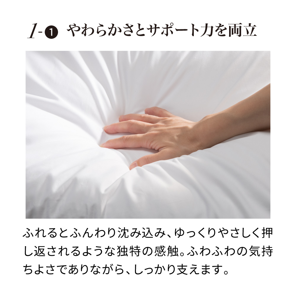 ふれるとふんわり沈み込み、ゆっくりやさしく押し返されるような独特の感触。ふわふわの気持ちよさでありながら、しっかり支えます。
