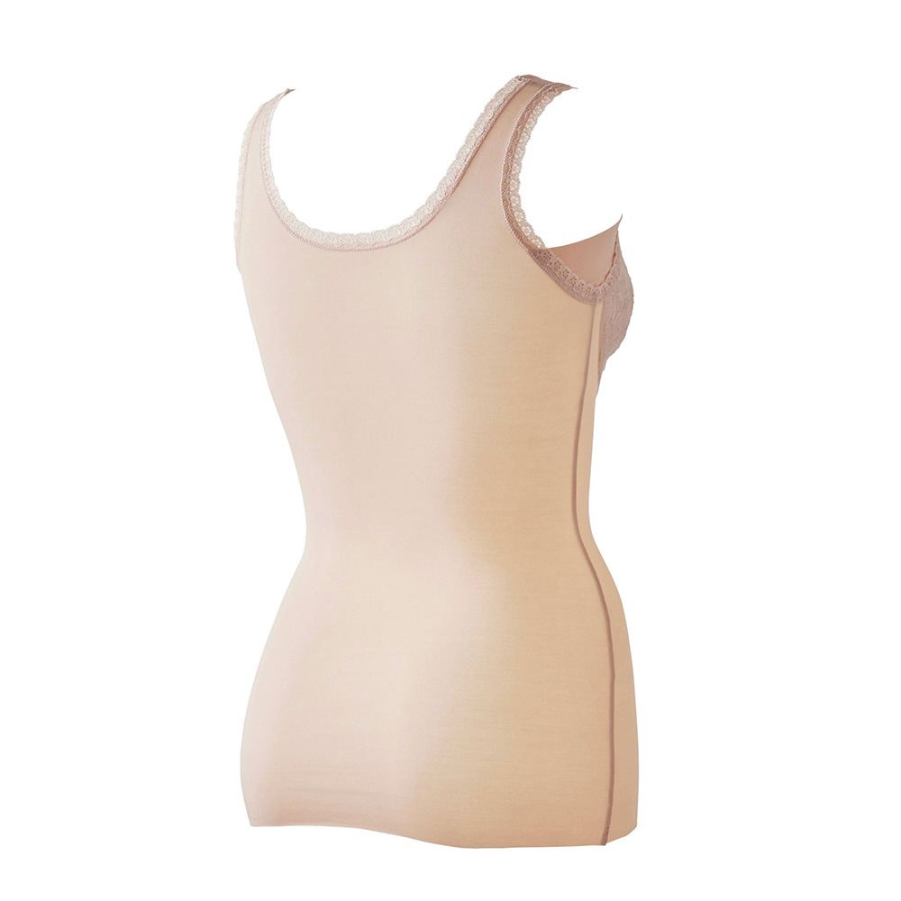 バストアンダーから腹部にかけて、共生地の2重仕様でソフトにサポート。滑らかなボディラインを作ります。