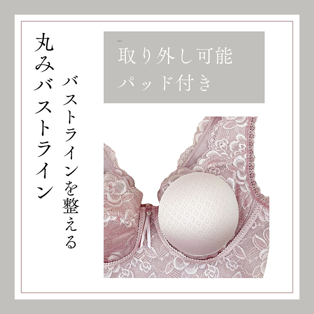 「自分に合うサイズがない」そんな悩みにも応えたい。ブルーメリアシリーズは豊富なサイズ展開で、女性の多様な体型に寄り添います。普段お使いのブラのカップでレギュラーかグラマーか選んで「自分にぴったり」と感じていただける一枚を見つけていただけるはずです!商品画像の説明。