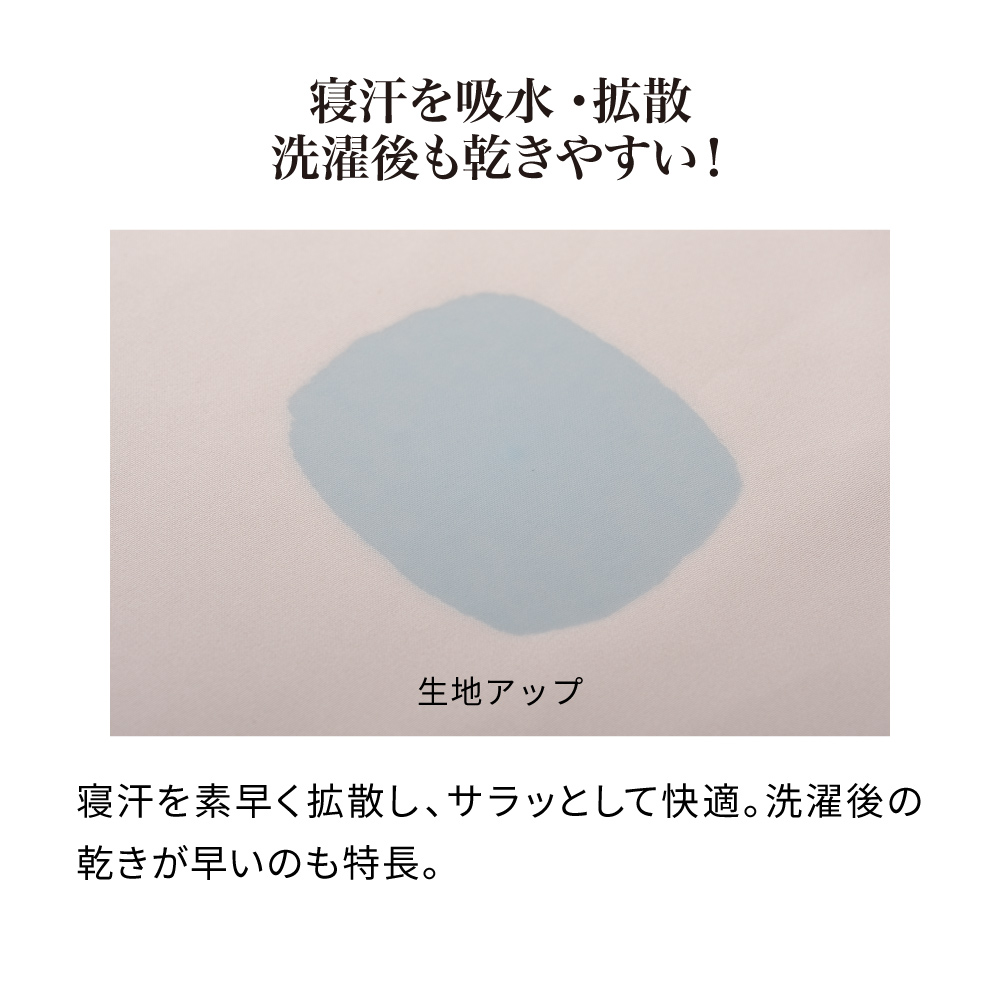 寝汗を吸水・拡散し、洗濯後も乾きやすく、透湿性があり肌ざわり◎