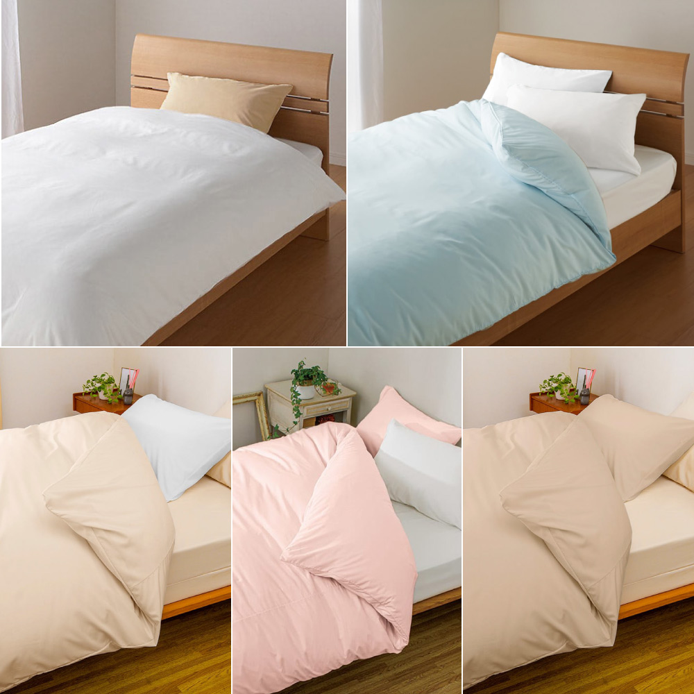 上段左から(ア)ホワイト、(オ)ブルー 下段左から(イ)ベージュ、(エ)ピンク、(ウ)モカブラウン ※お届けは掛け布団カバーです。
