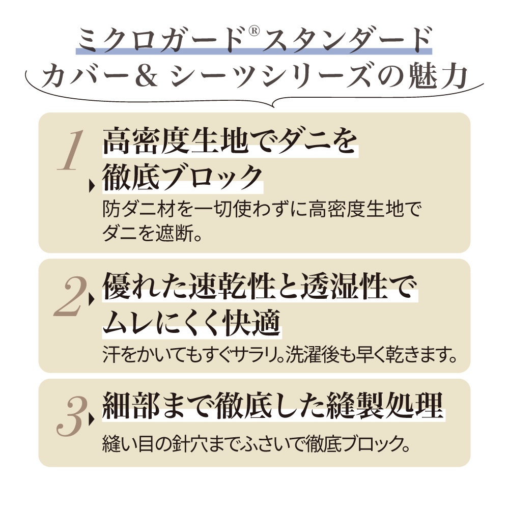 テイジンの特殊技術で極細繊維を高密度に織り上げたミクロガード(R)スタンダード。その緻密さで、ダニを徹底ブロック!