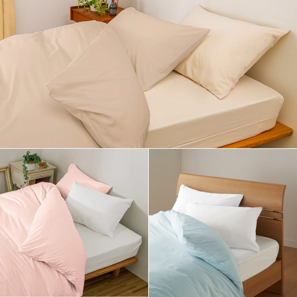 色を組み合わせてシリーズでコーディネートもできます。上段(イ)ベージュ 下段(ア)ホワイト ※お届けはボックスシーツです。