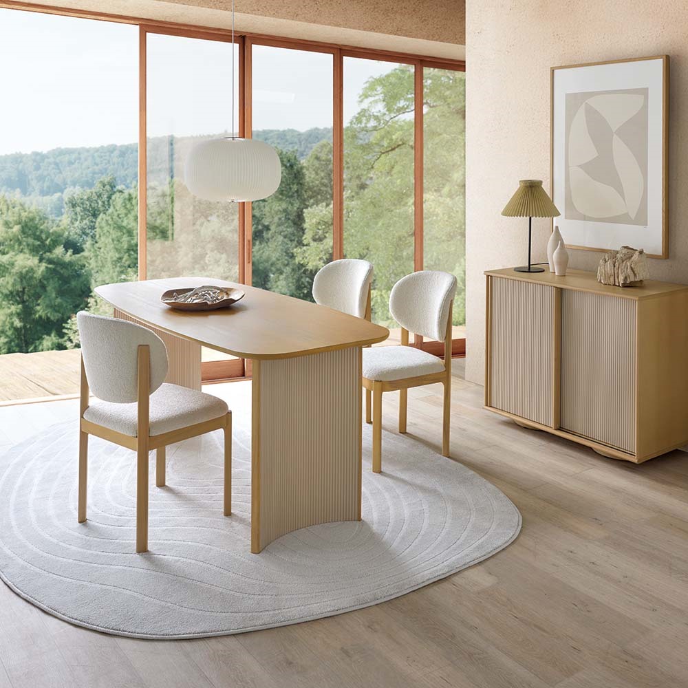 珍しい有機的なシェイプと、波紋を思わせる凹凸で表現された曲線がモダンな印象。