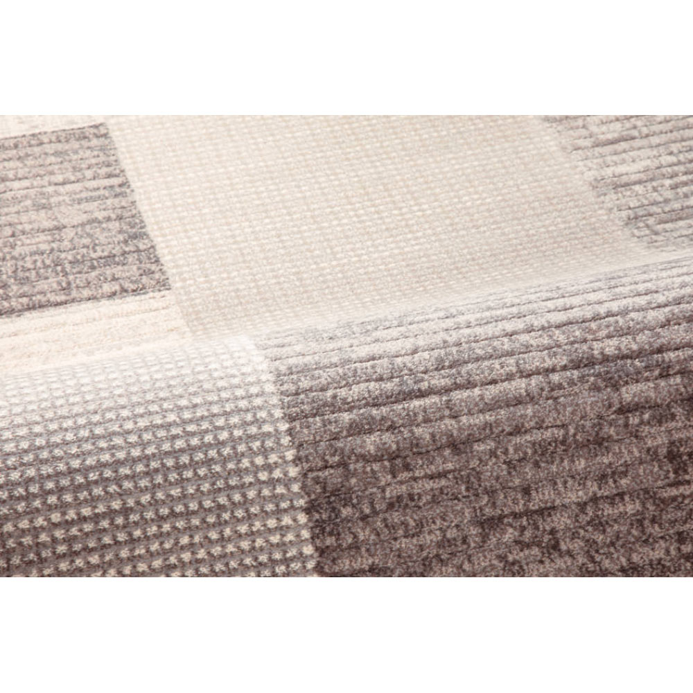 幾何学パターンに多様な織り柄がいくつも施されたデザイン。ベルギーならではの技が駆使された存在感のあるラグです。