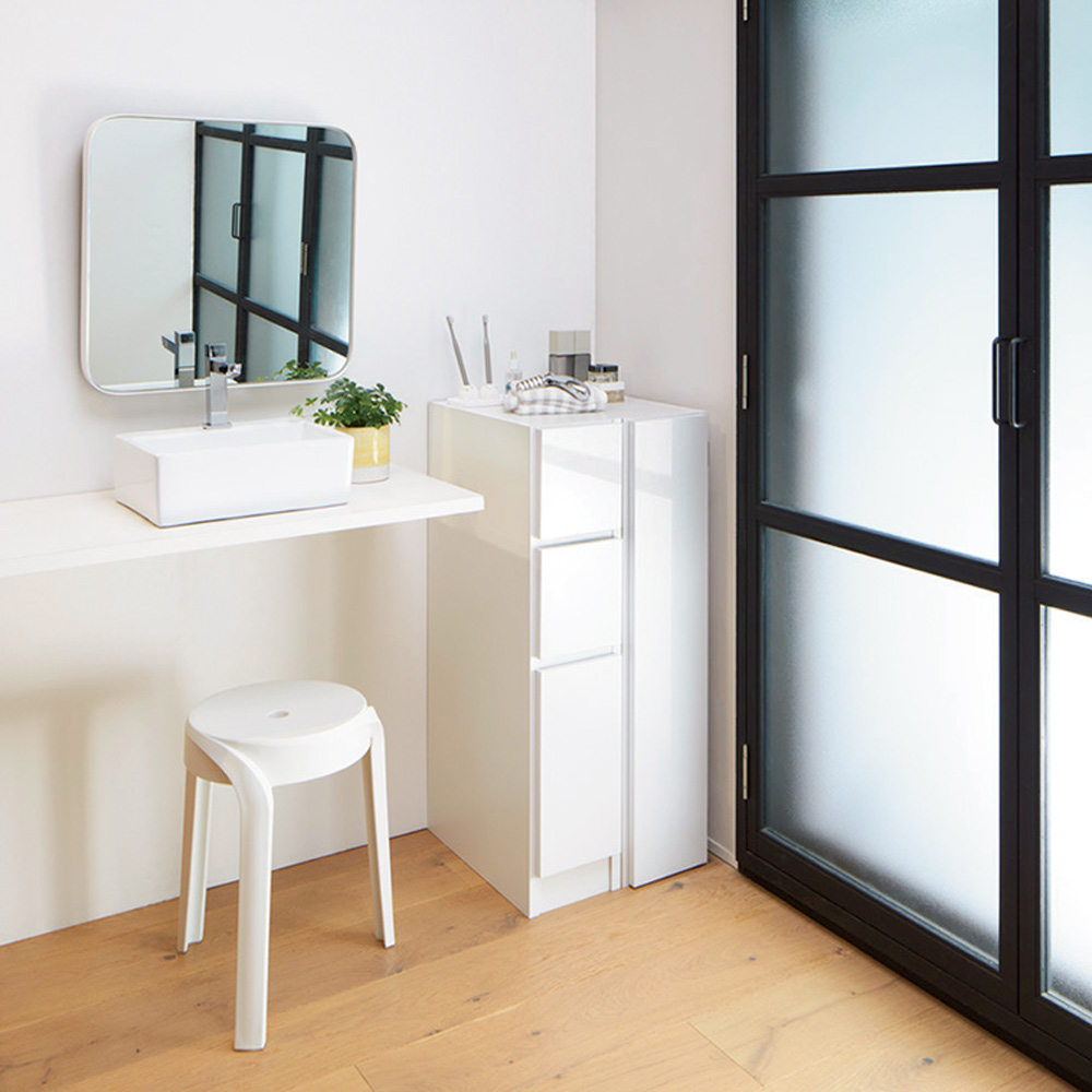 使用イメージ 清潔感のあるスタイリッシュな佇まいです。 ※写真は別売りの幅30cm奥行45cmタイプです。