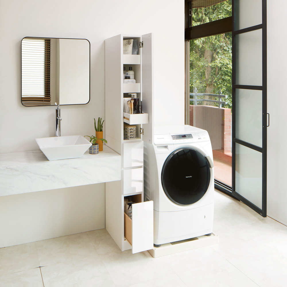 [幅20奥行45cm] スライドトレー付きすき間収納庫 完成品 日本製 洗面所収納 隙間収納 トイレ 洗面所 ランドリー収納 541922
