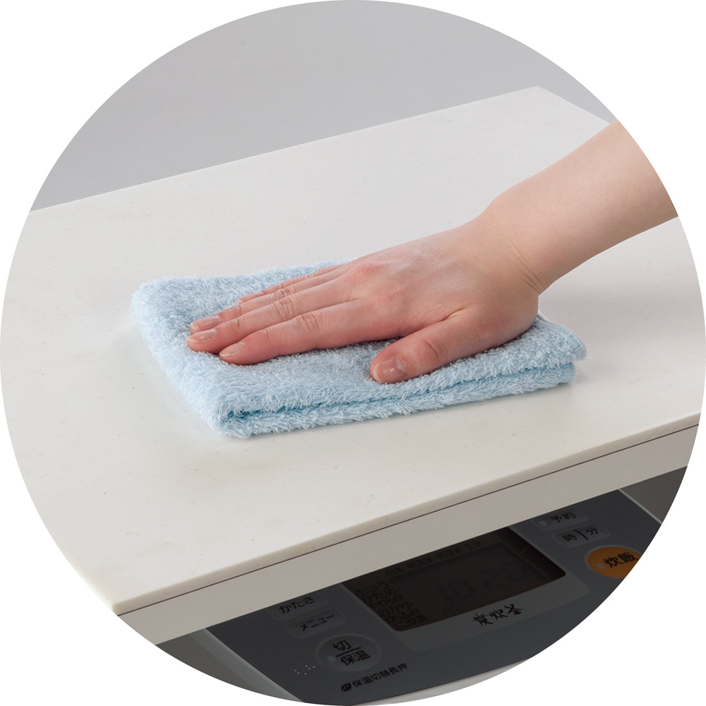 ◆人工大理石は傷や手垢が目立たない、扱いやすい素材です。