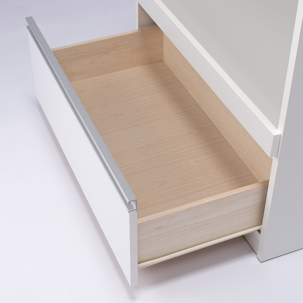 引き出しは滑らかに開閉できるストッパー付きレールを採用。