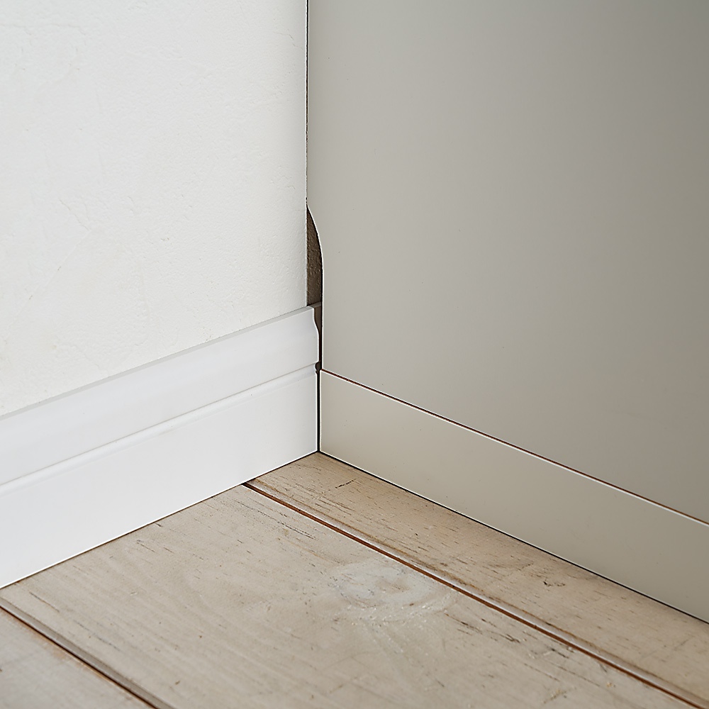9×1cmの幅木カットが施されており、壁にぴったり付けられます。