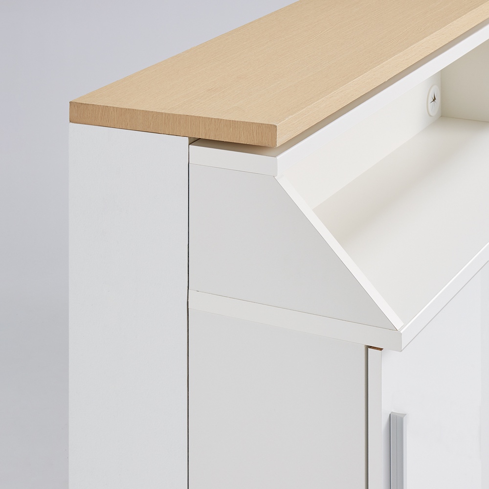 当商品は、「天板奥行13cm」と非常に薄型で、天板下は「斜めカット」を施したこだわりの設計。