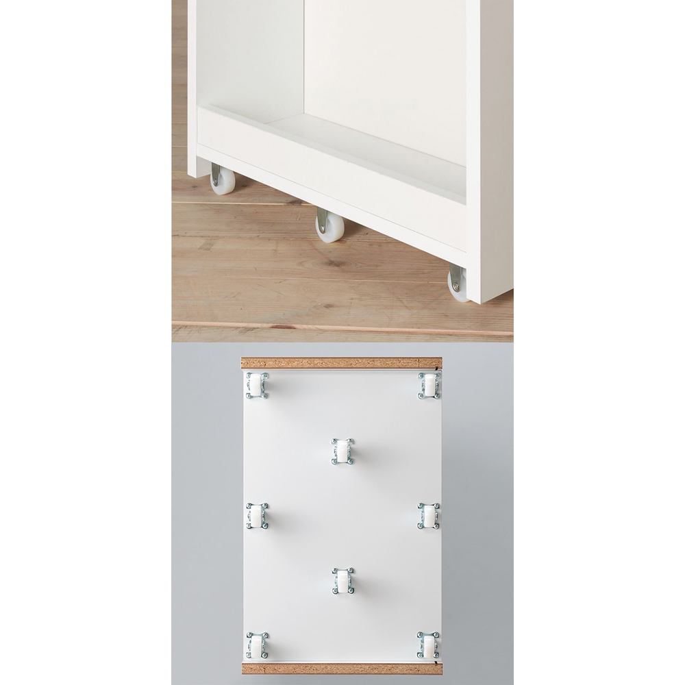 • キャスターは、幅30cmタイプ以下は6個付き、幅31cmタイプ以上は8個付いているので安定感があり、ラクに引き出せます。 ※写真イメージは8個付き。