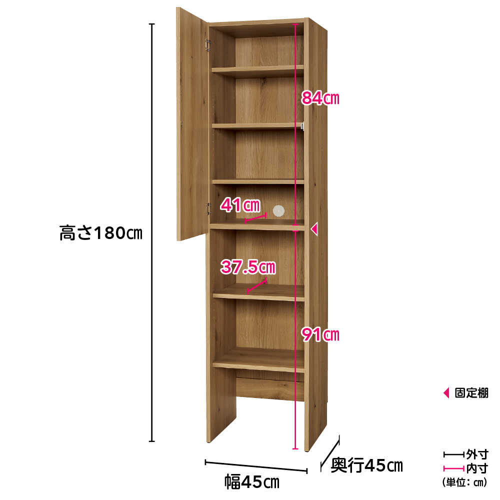 (イ)ナチュラルオーク(単位:cm) ※可動棚奥行37.5cm・固定棚奥行41cm ※写真は幅45cm