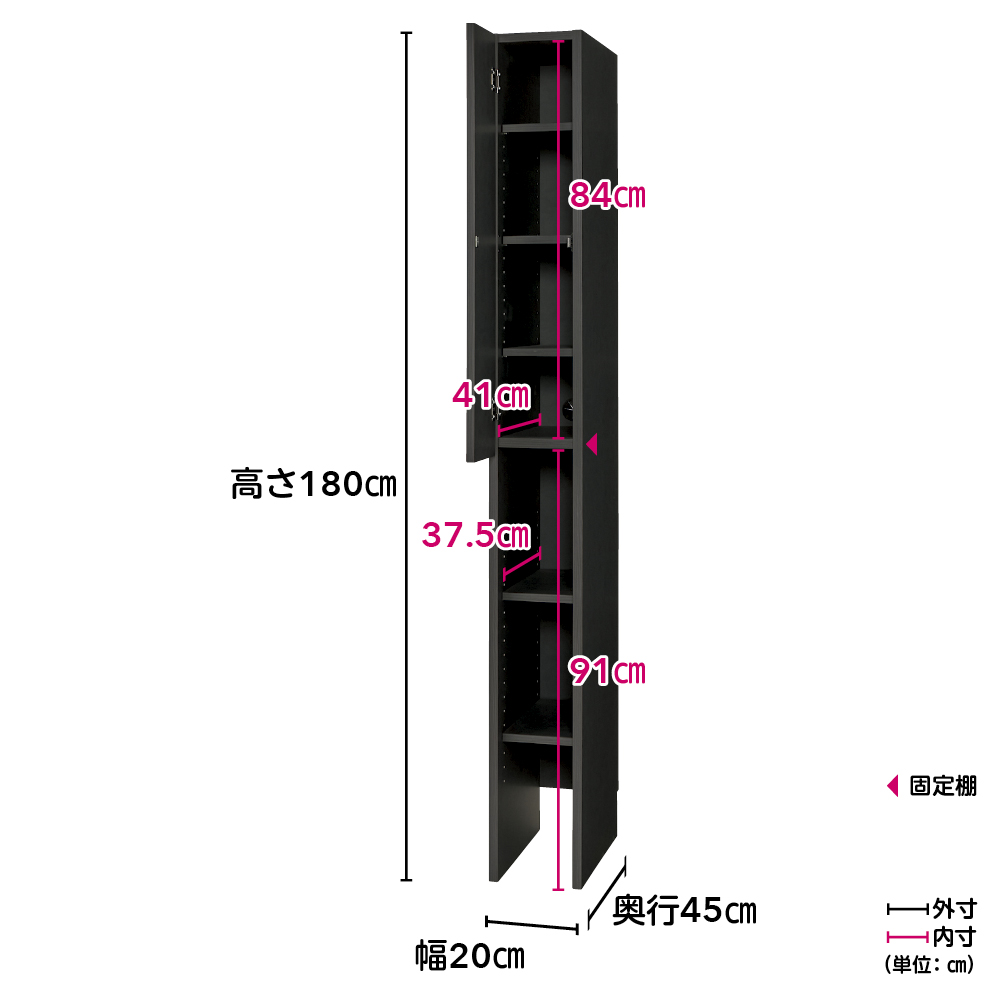 (ア)ブラック(単位:cm) ※可動棚奥行37.5cm・固定棚奥行41cm ※写真は幅20cm