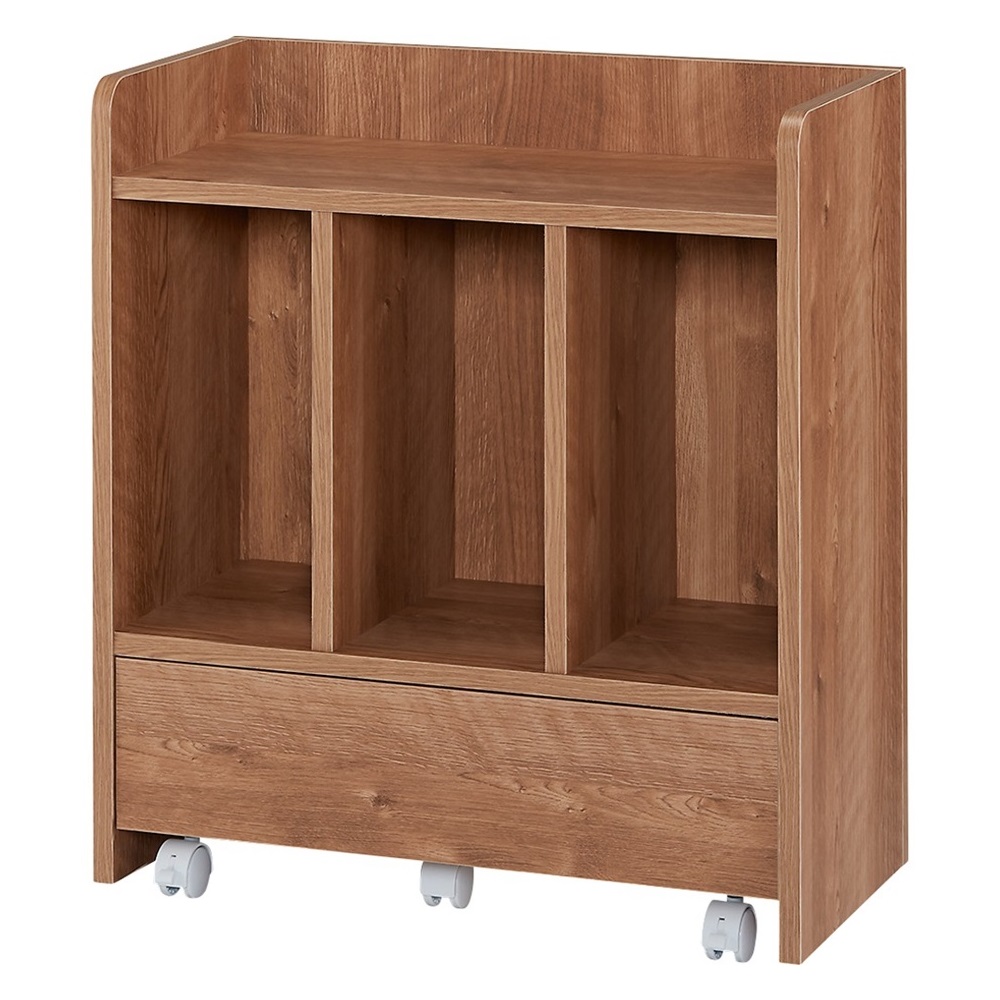 コーディネート例(イ)ブラウン 窓下に置きやすい高さ66cm。壁際に収納が作れてリビングや子供部屋が片付きます。 ※写真は左から小引き出しタイプ・幅79高さ66cm、棚タイプ・幅79高さ66cm、マルチタイプ・幅79高さ66cmです。