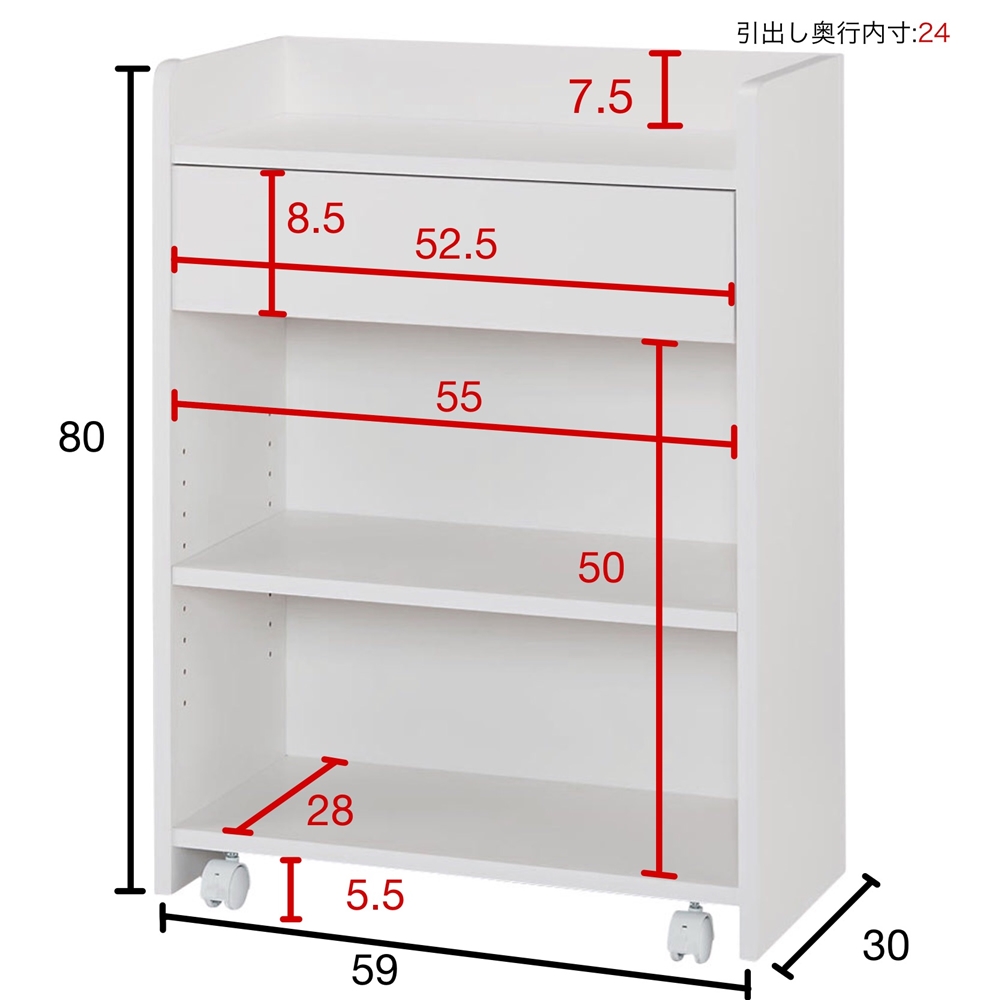 ■サイズ:幅59奥行30高さ80cm、引き出し奥行24cm