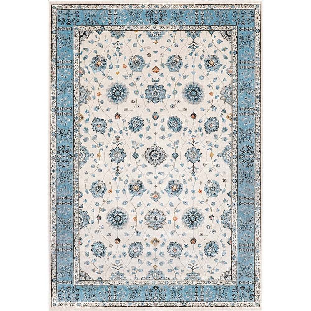 伝統的なオリエンタル柄と爽やかなブルー×アイボリーの組み合わせでクラシックなスタイルから北欧インテリアまで幅広く使える1枚。内側がグレイッシュなアイボリー系と逆転したような内側がライトブルー系の2配色です。さらっと軽やかな質感で年中使いやすいラグ