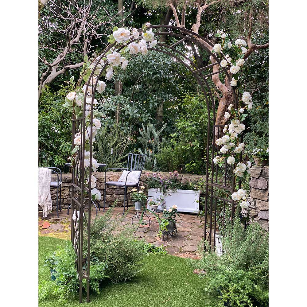大型で存在感たっぷりのアーチは、庭空間を印象づける重要なアイテム。