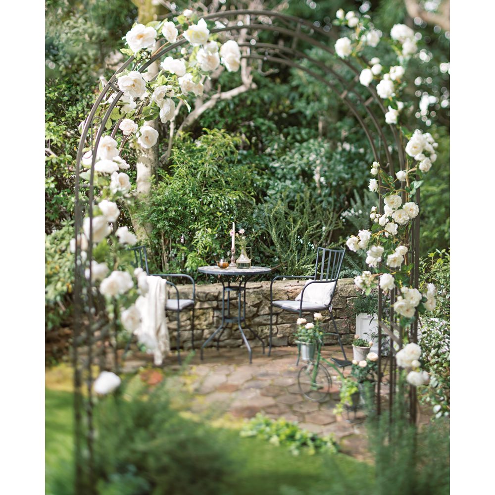 奥行たっぷりのアーチにグリーンを絡ませるだけで、印象的なフォーカルポイントに。