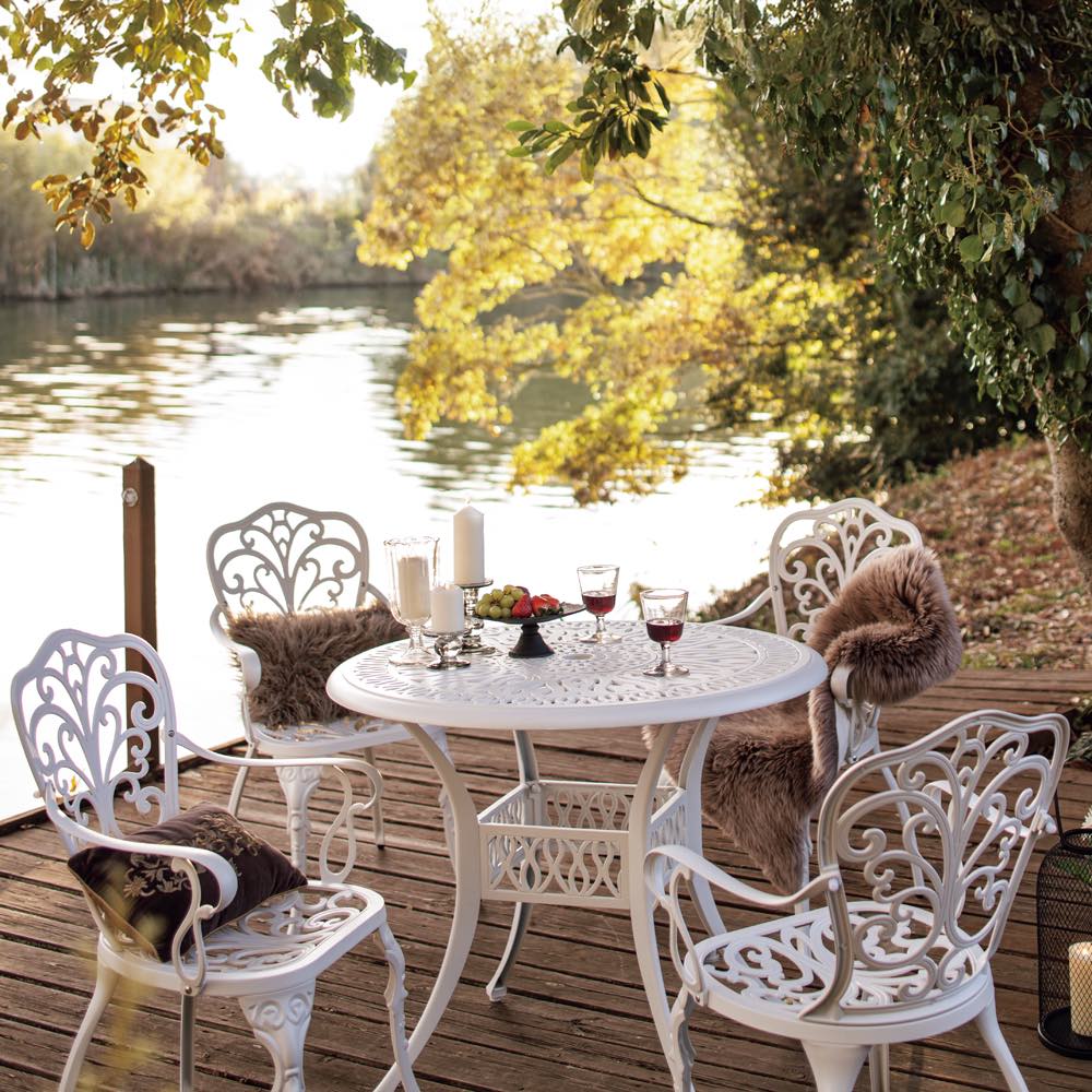 上質感あふれるアルミ鋳物に施されたアート感覚の繊細な装飾。光と影に美しく映えて伝統的なイングリッシュガーデンを演出します。