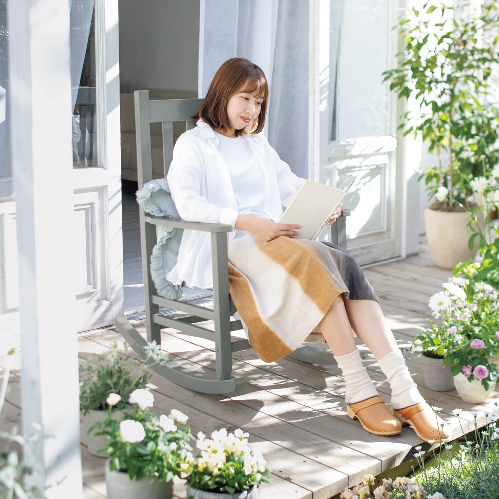 ベランダに置けるサイズ感で、お庭のオーナメントとしても素敵。重心が前にあり、自分の脚で揺れ具合を調節するタイプです。