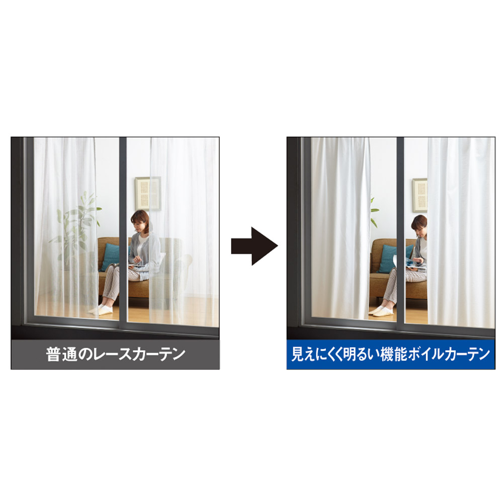 ≪幅100×丈213cm≫ 見えにくく明るい機能ボイルカーテン 2枚組 防炎カーテン カーテン 524632