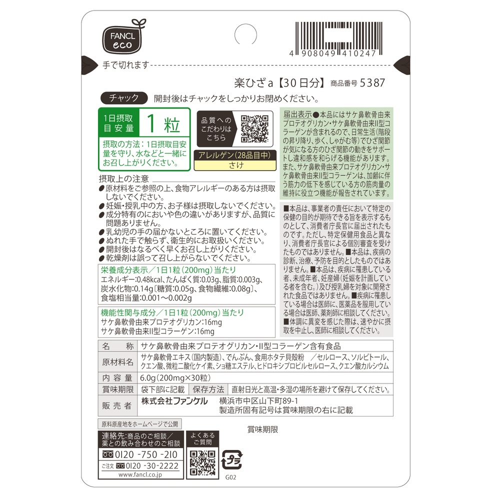FANCL/ファンケル 楽ひざ 30日分【機能性表示食品】 健康食品 CA46N6