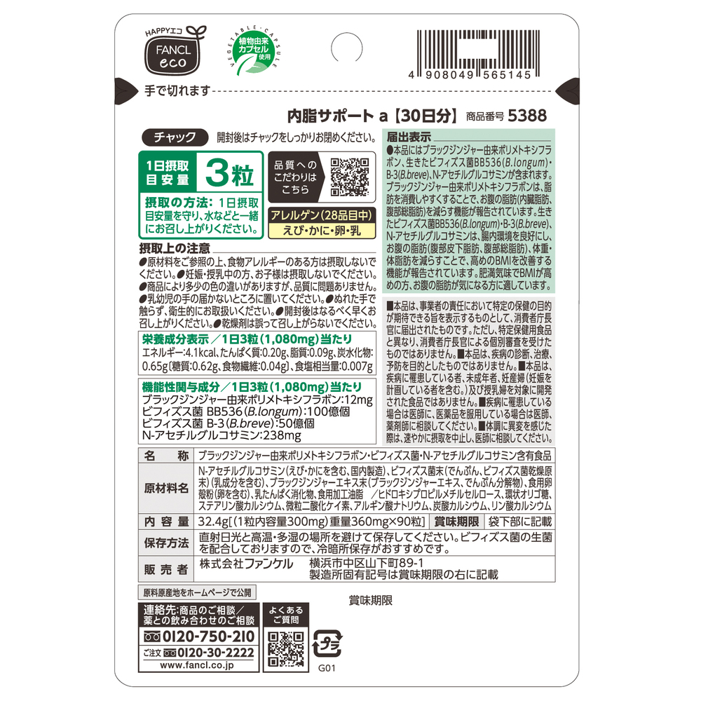 FANCL/ファンケル 内脂サポート 30日分(90粒) 【機能性表示食品】 健康食品 CA46M4