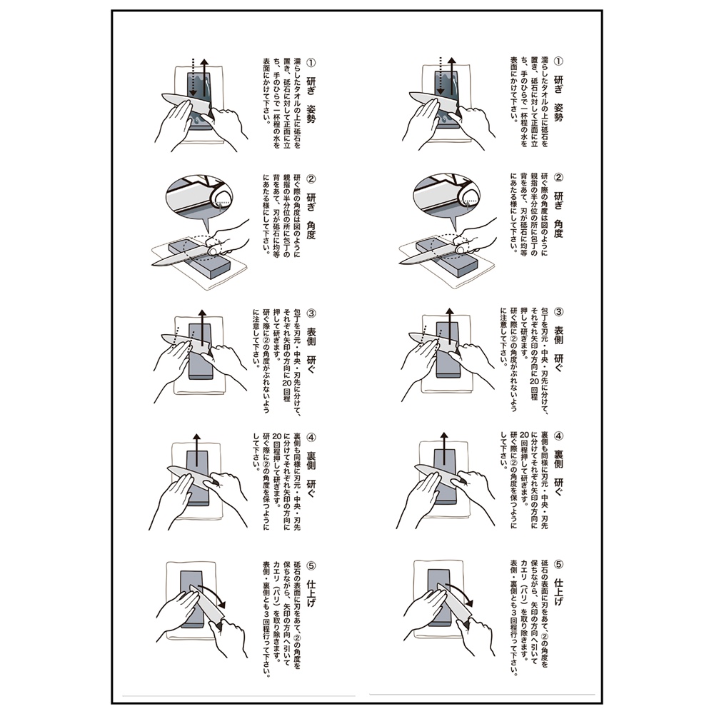 ■森平監修のイラスト付き研ぎ方の説明書が付属します。