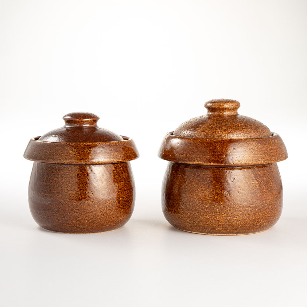 • (ア)ブラウンは落ち着きのある素朴な風合いが魅力。1合用と2合用から選べます。