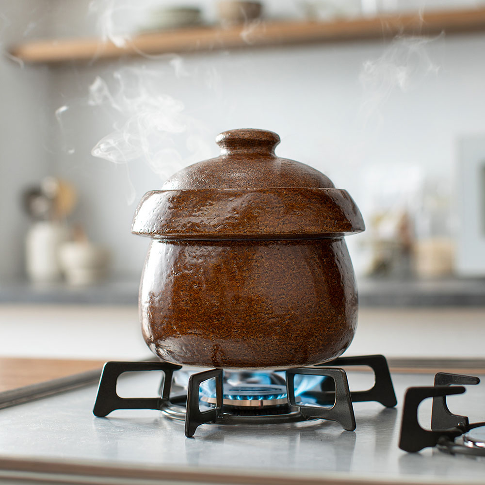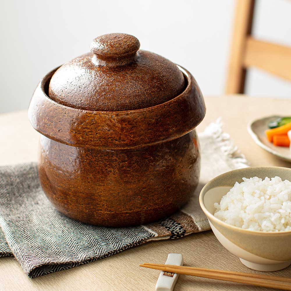 ごはんが甘くなる秘密は、この贅沢な厚み。高い耐熱性と耐久性で知られる萬古焼。荒めの土を使い肉厚に仕上げることで、沸騰するまでお米にじっくりと熱を加え、甘味を引き出します。