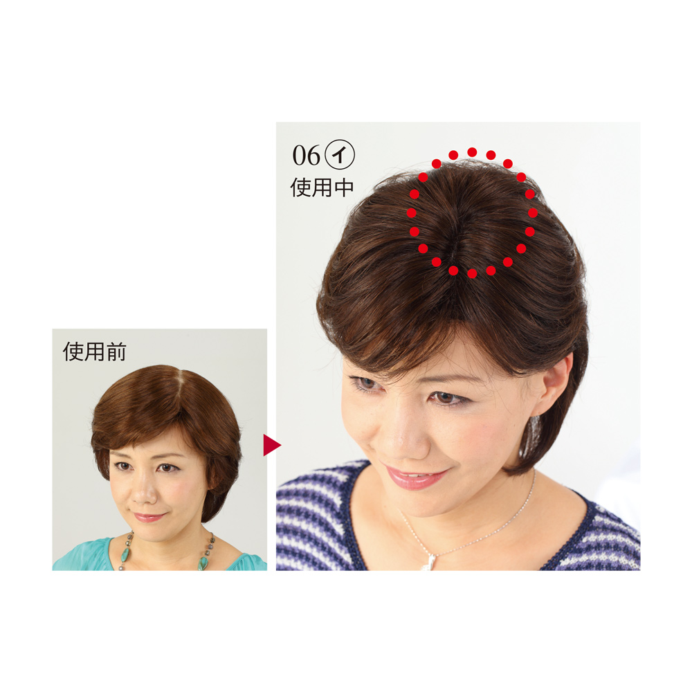 手頭頂部を部分的にカバーしボリュームアップしたり根元の白髪をカバーすることができるヘアピースは、見た目が自然であることと、つけ心地のよさで選ぶのがポイント。人毛のみで作ったヘアピースは、自然な毛流れで違和感なくなじみ、つけている事を感じさせません。