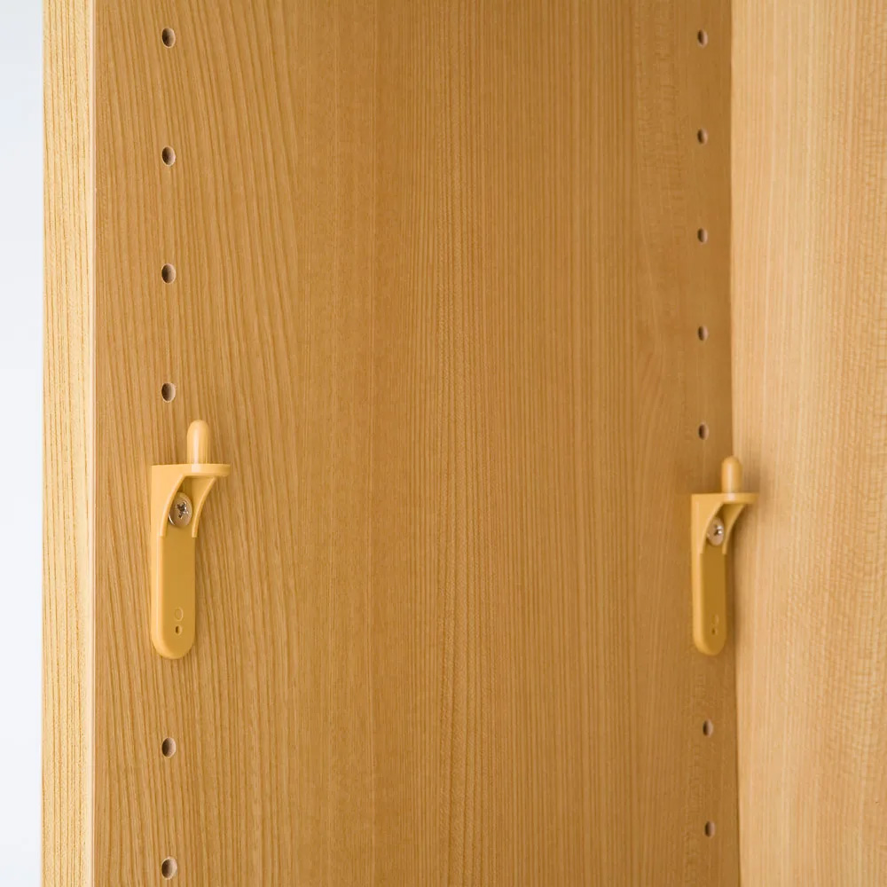 可動棚によくある、ただ水平に差し込むだけの棚受けではなく、ネジで本体にしっかり固定した上で可動棚を垂直に受け止める「フリーストップ棚受」(可動固定棚のみ)、側板と裏板をしっかり固定する裏板止メ仕様を採用し、本体の強度と棚板の耐荷重を高めています。また、高さ178cm以上のタイプには転倒防止金具が付属します。